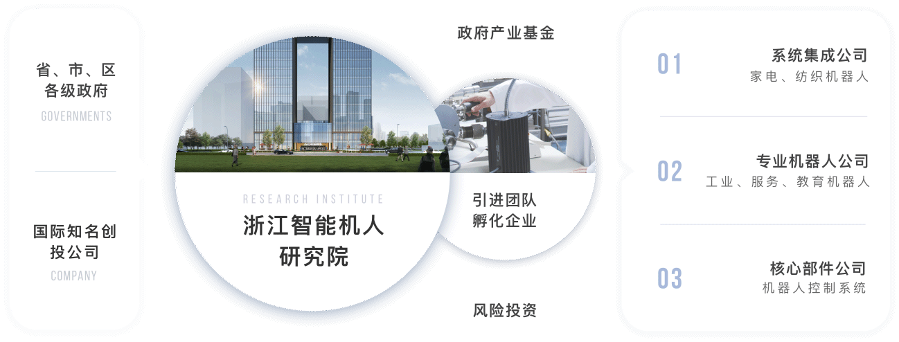 研究院依托浙江大學機器人研究中心和浙江省機器人產(chǎn)業(yè)發(fā)展協(xié)會合作的同時,吸收金沙江聯(lián)合資本、之江實驗室等多方位資源,并與聯(lián)盟成員單位及國內外其他機器人研究機構、知名機器人企業(yè)形成互補合作關系并取得多項成果,積極打造一個智能機器人產(chǎn)業(yè)技術平臺。